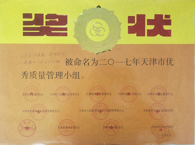 被命名为2017年天津市优秀质量管理小组