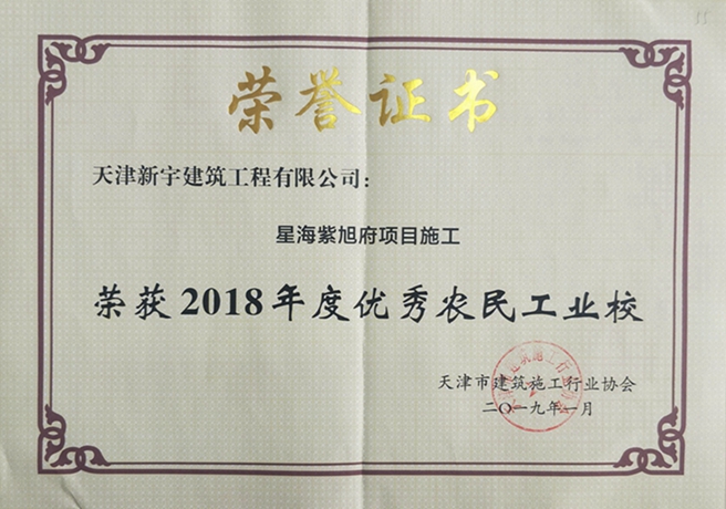 星海紫旭府项目施工荣获2018年度优秀农民工业校