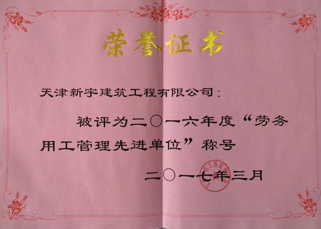 2016年劳务用工管理先进单位