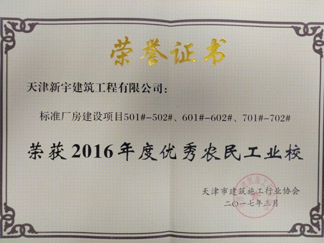 2016年优秀农民工业校