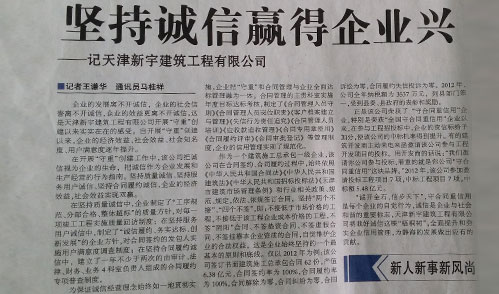 企业的发展离不开诚信,企业的社会信誉离不开诚信,企业的效益更离不开诚信,这是天津新字建筑开云(中国)官方网站有限公司开展"守重"创建以来实实...