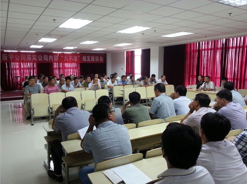 2014年8月22日(星期五)下午在开云(中国)官方网站大厦19楼大会议室,公司召开落实内部“六不准”规定座谈会。各分公司经营班子、股长、项目经理,佳艺公司、保温公司、消防公司、构件公司、试验中心负责人,各专业承包队负责人,佳艺劳务队队长及机关科长以上人员共90人参加了会议。